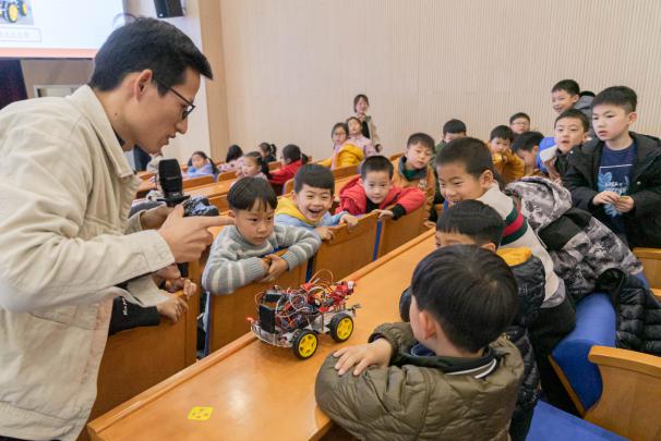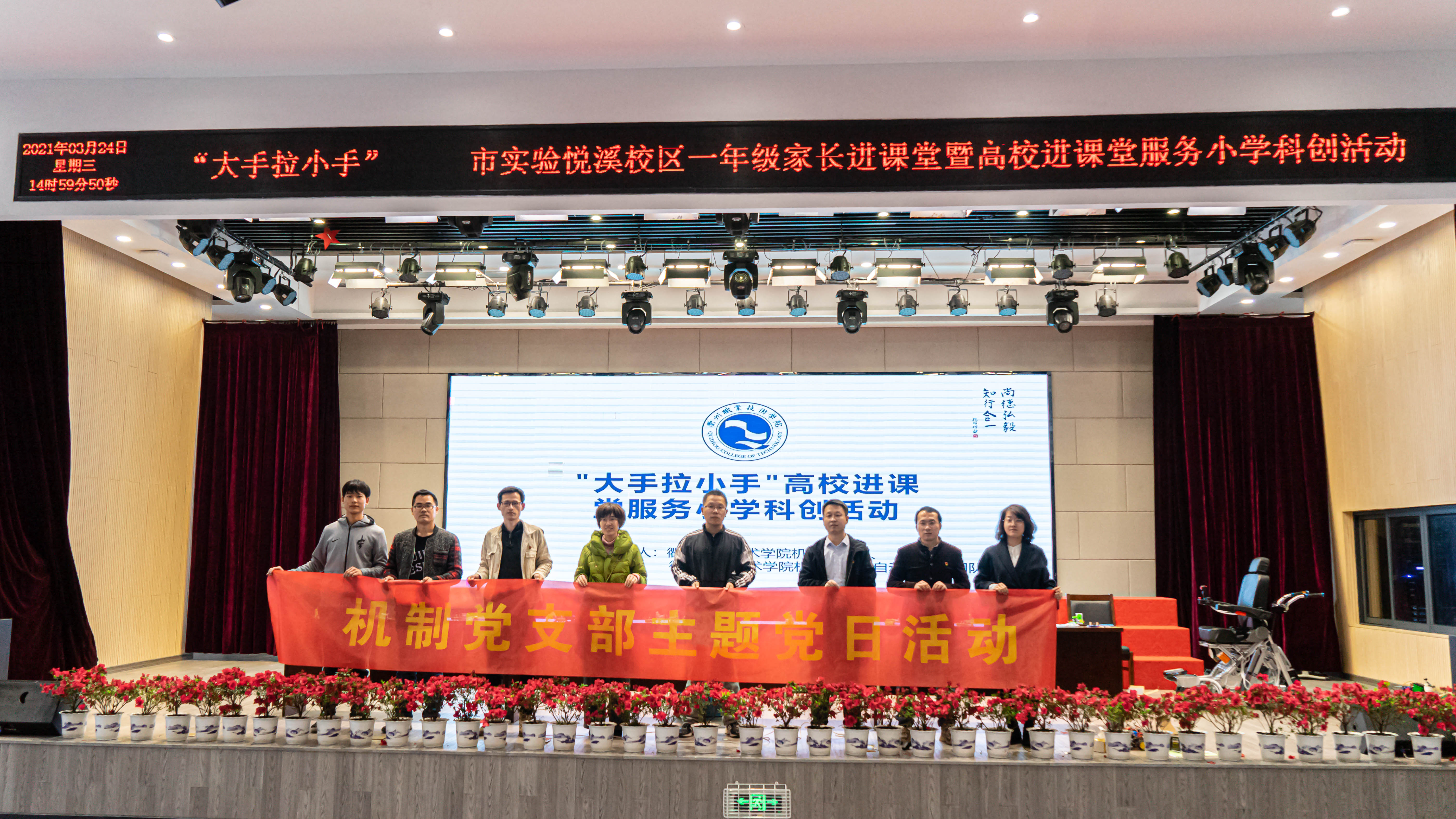 为培养小员工的科学道德、创新精神和劳动实践能力,2021年3月24日下午,7790cnm必发集团机制党支部及专业团队教师、员工代表一行来到衢州市第三实验小学开展科创活动。机制党支部与专业团队为第三实验小学一年级全部班级分两批次近500名小员工带来众多科创作品,其中有自动浇花机、智慧垃圾桶、智能平衡小车等科创小作品,还包括刚刚在全国第九届老员工机械创新设计大赛获得二等奖的作品防摔越障漫步轮车。