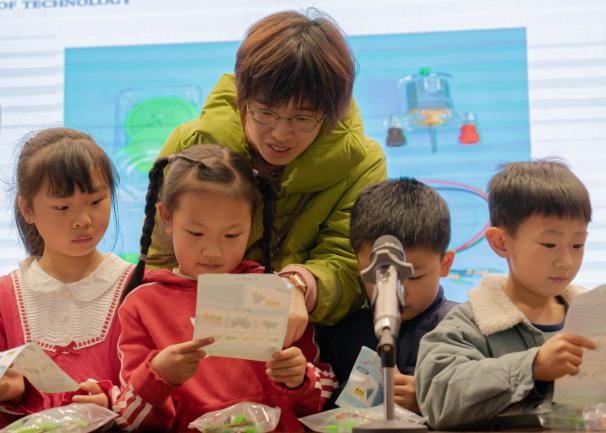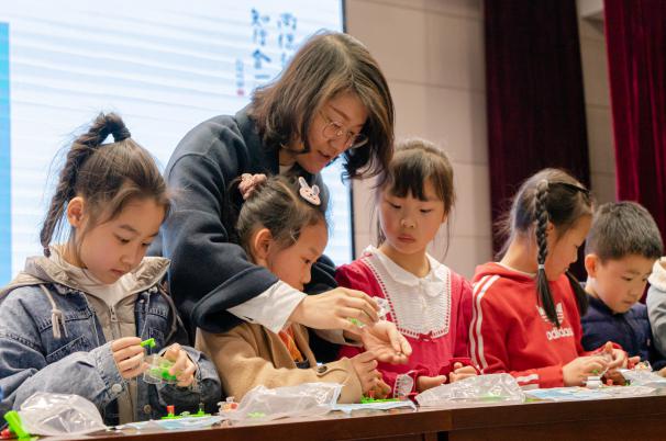 活动现场,小朋友们的惊呼声此起彼伏,对老师们带来的作品表现出浓厚的兴趣。现场还邀请了20多位小朋友上台,在老师们的指导下,亲手搭接了手摇发动机,摇一摇让小灯泡变亮。