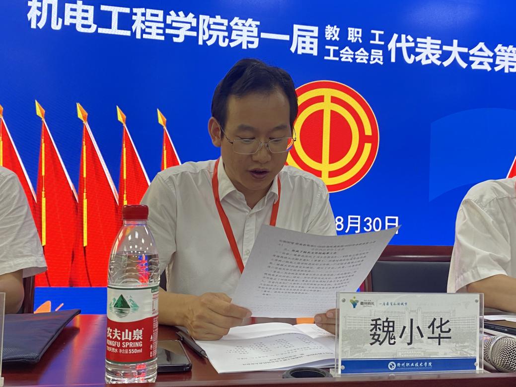 8月30日上午,7790cnm必发集团第一届教职工暨工会会员代表大会第一次会议在机电大楼303顺利召开。大会应到正式代表23人,实到22人。会议由党总支书记朱峻主持。