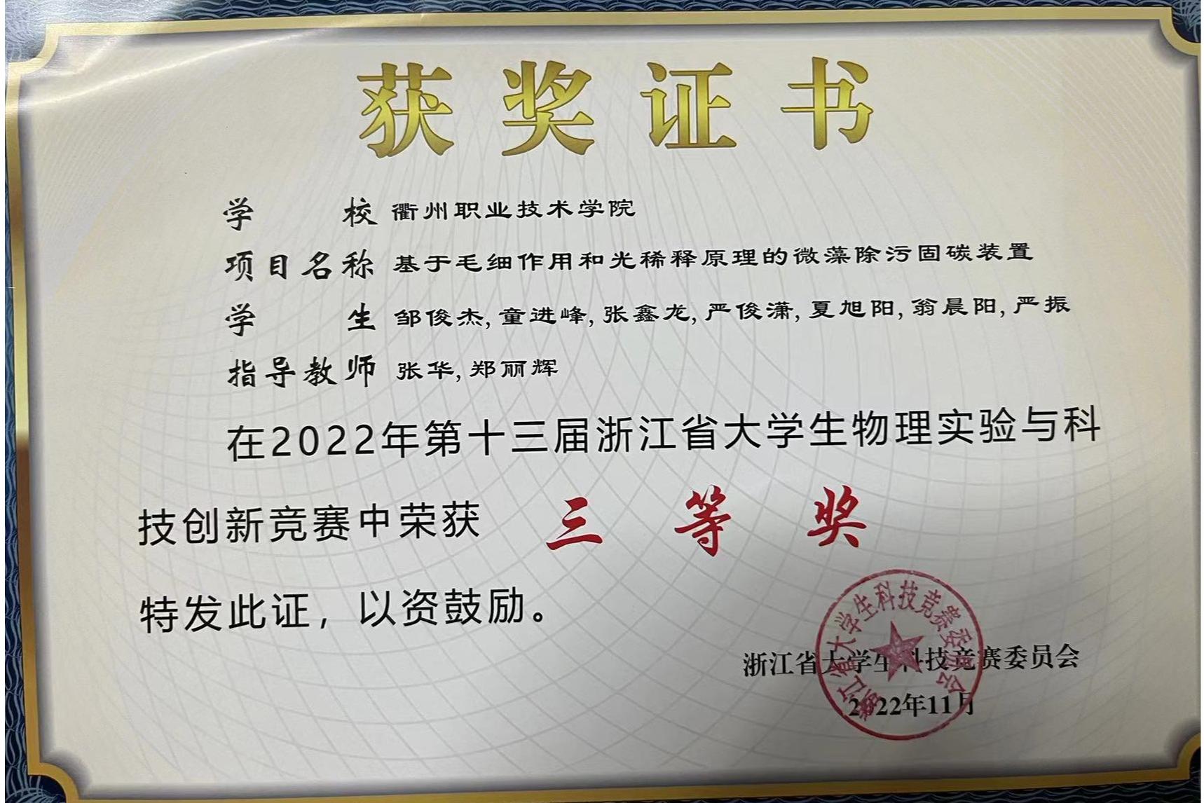 张华、郑丽辉指导员工获2022年第十三届浙江省老员工物理竞赛三等奖