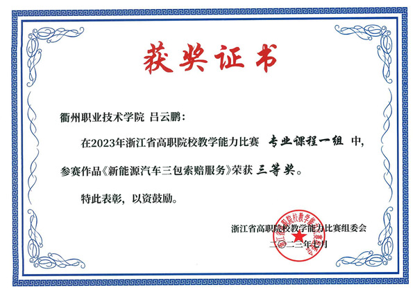 吕云鹏获2023年浙江省教学能力比赛三等奖