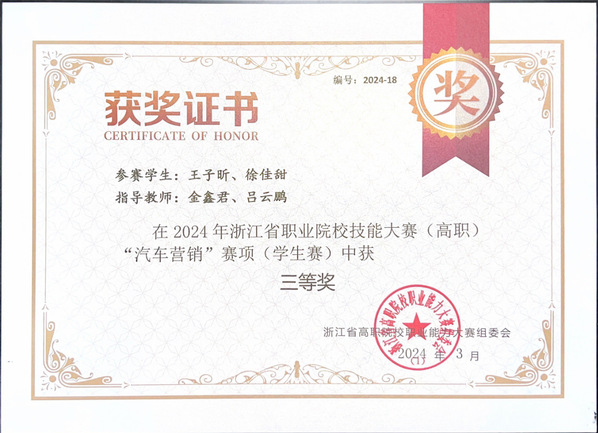 吕云鹏指导员工获2024年汽车营销技能竞赛三等奖
